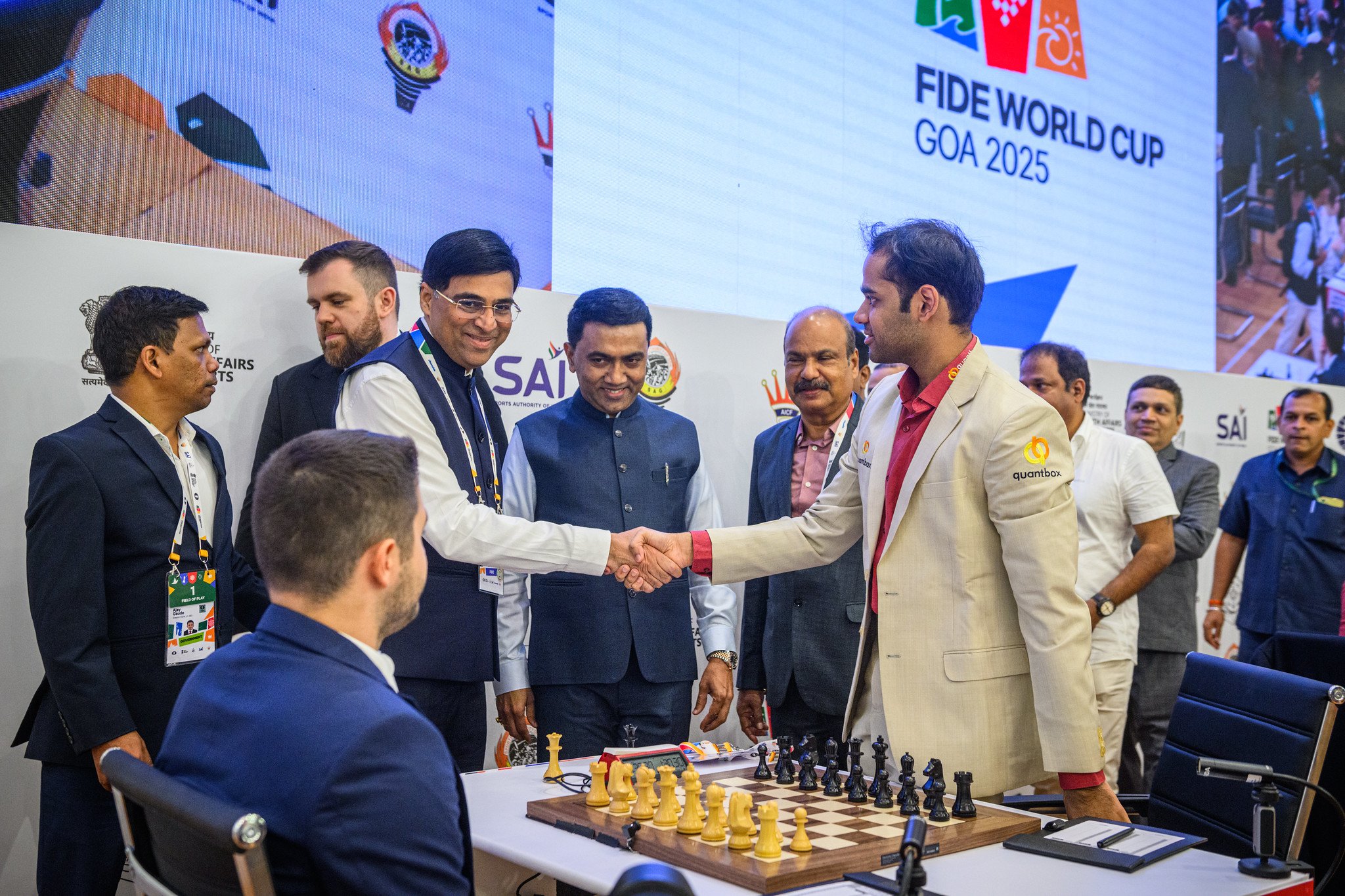 06.11.2025 – Der FIDE World Cup mit seiner großen Teilnehmerzahl und dem unerbittlichen K.-o.-Format sorgt regelmäßig für Überraschungen und Favoritenstürze, manchmal schon sehr früh. Ian Nepomniachtchi, Wesley So oder Aravindh Chithambaram waren als Favoriten für die zweite Runde gesetzt, sind aber schon raus. Einer, der indes immer gut mit dem K.-o.-Format zurechtkam, war Vishy Anand, Ehrengast der zweiten Runde. | Fotos: Michal Walusza, Eteri Kublashvili, Shahid Ahmed