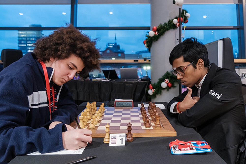 02.12.2025 – Zu den London Chess Classic gehört neben dem Eliteturnier auch ein gut besetztes Open. Dort führt der weltbeste Junior Praggnanandhaa die Setzliste an und liegt auch nach sieben Runden vorne, allerdings nicht alleine. Auch der deutsche Großmeister Martin Krämer spielt mit einem halben Punkt weniger gut mit. | Fotos: London Chess Classic