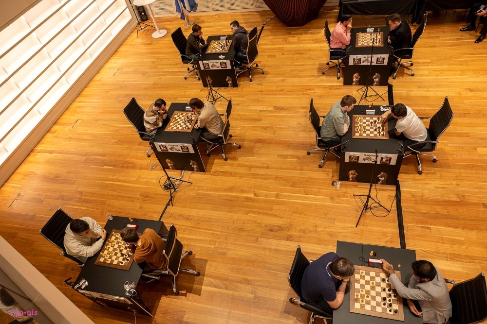 03.12.2025 – Beim zweiten Jerusalem Schachfestival qualifizierten sich Arseniy Nesterov und Evgeny Alekseev als beste Spieler des Opens für das Masters und trafen dort auf zehn eingeladene Teilnehmer. Aus dem Rundenturnier des Masters erreichten Svidler, Anand, Nepomniachtchi und Erigaisi die K.o.-Phase. Halbfinale und Finale werden heute ausgetragen. | Fotos: Turnierseite/ Alon Shulman