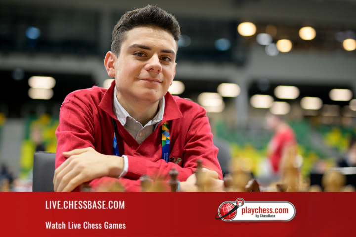13.04.2026 – Nach fünf Runden der Europameisterschaft in Katowice teilen sich sechs Spieler mit 4,5 von 5 Punkten die Führung: In der vierten Runde trennten sich die Führenden Eduardo Iturrizaga und Robert Hovhannisyan (im Bild) remis. Vier Spieler schlossen mit Siegen zu ihnen auf. Dicht dahinter liegen 44 Spieler mit 4 von 5 Punkten, während einige der Topgesetzten, darunter Igor Kovalenko, im Schweizer System mit 501 Teilnehmern bereits einen Punkt hinter der Spitze liegen. | Foto: Offizielle Website