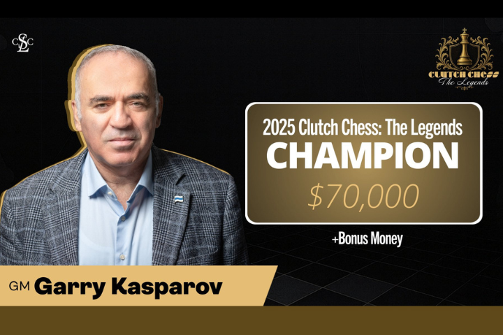 11.10.2025 – Viswanathan Anand sammelte im Show-Event „Clutch Chess – The Legends“ gegen Garry Kasparov nochmal Punkte - leider zu spät. Nachdem Kasparov nach Tag 1 mit 2,5:1,5 in Führung ging und auch nach Tag 2 mit 8,5:3,5 seinen Vorsprung behielt, begann Anand an Tag 3 Punkte zu sammeln. Bei diesem Turnier ist besonders, dass ein Sieg an Tag 3 dreifach zählt. Nach zwei Siegen von Anand, einem Remis und einem Sieg für Kasparov, ging der Tagessieg an Anand (7:4 für Anand), doch Kasparov erreichte den Gesamtsieg mit einem 13:11. | Foto: Saint Louis Chess Club