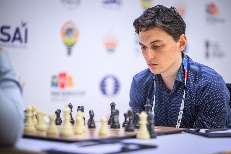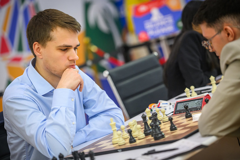 15.11.2025 – Alexander Donchenko hatte den Einzug ins Viertelfinale in Spiel 2 bereits auf dem Brett. Durch einen Fehler durch ihn im Turmendspiel konnte sein Gegner doch noch remisieren, wodurch Donchenko nochmal im Tiebreak um den Einzug ins Viertelfinale kämpfen muss. Frederik Svane verlor an Tag 1, so dass sein Remis an Tag 2 der fünften Runde leider nicht ausreicht, um im World Cup weiterzuspielen. | Foto: Michal Walusza