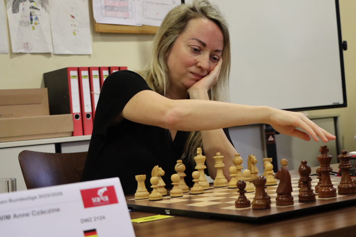 01.12.2025 – Die Bundesliga der Frauen absolvierte ihr zweites Saisonwochenende. Nach den Runden 3 und 4 sind mit OSG Baden-Baden und dem SK Schwäbisch Hall (besiegte in Runde 4 Bad Königshofen) noch zwei Teams verlustpunktfrei. Eine faustdicke Überraschung gab es dennoch beim Spitzenteam im Kampf gegen Aufsteiger Chemnitzer SC Aufbau 95: GM Elisabeth Pähtz verlor in Runde 3 gegen WIM Anne Czäczine. | Foto: DSB/CSC Aufbau 95