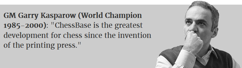 • CHESSBASE MOBILE: Die App für unterwegs – Zugriff auf die eigenen Cloud-Datenbanken, Eröffnungsvorbereitungen und die ChessBase Online-Datenbank mit über 12 Millionen Partien!*