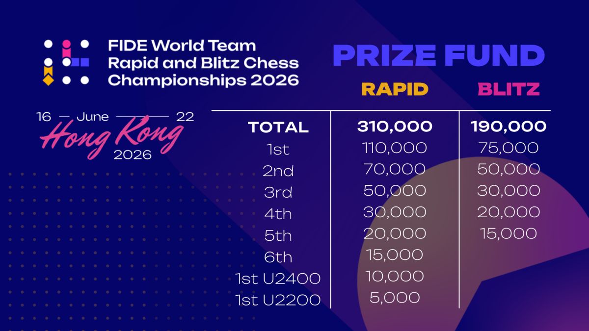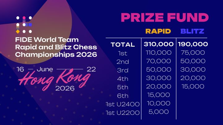 Der Gesamtpreispool beider Meisterschaften beträgt 500.000 Euro. Das Schnellschach-Weltmeisterteam erhält 110.000 Euro, das Blitzschach-Weltmeisterteam 75.000 Euro.