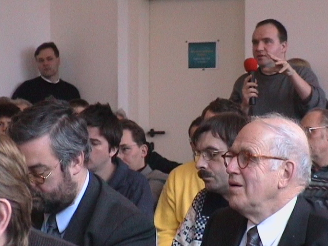 Diskussion: Johannes Fischer (mit Mikro), vorne links: Dr. Michael