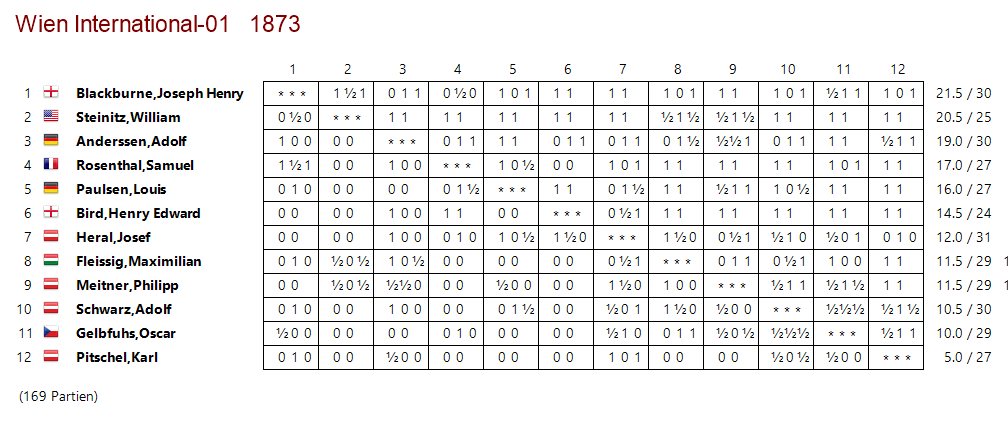 Den Stichkampf gegen Blackburne entschied Steinitz mit 2:0 für sich und ging so als Sieger in die Geschichte des Ersten internationalen Wiener Schachkongresses ein.