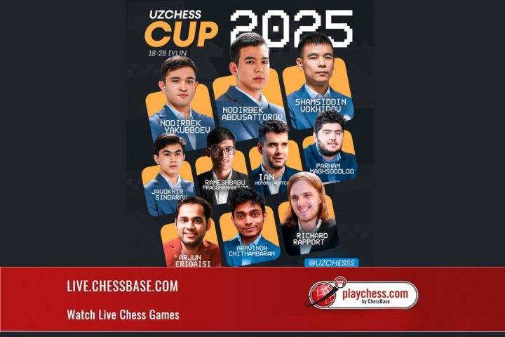 27.06.2025 – Vier usbekische Spitzenspieler treffen im 2. UzChess Masters auf sechs internationale Weltklassespieler. Arjun Erigaisi führt die Setzliste an. Neben dem Turniersieg geht es auch um Punkte für den FIDE-Circuit. Neben dem Masters wird nach dem Vorbild der Tata Steel Turniere ein Challengers (mit Vasyl Ivanchuk), ein Futures und ein Open gespielt. Täglich live ab 12:00 Uhr MESZ (1. Runde 12:30, letzte Runde 8:00 Uhr)