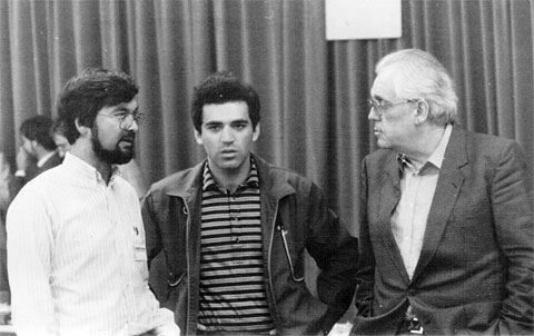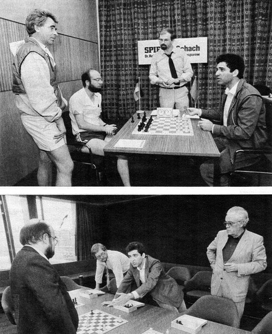 Unten: Gisbert Jacoby, Kasparov, rechts: Werner Harenberg