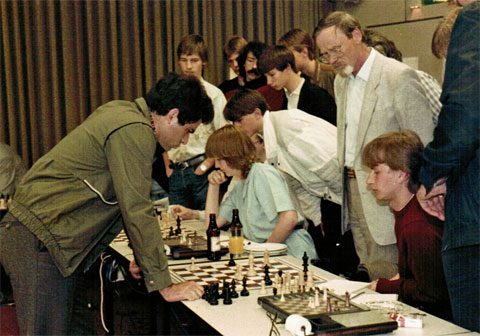 Das Hamburger Bundesliga-Team bestand zum größten Teil aus Amateuren. Der einzige Großmeister und Profi war Murray Chandler. Er gewann seine Partie gegen Kasparov, der gegen seine acht Gegner vier Mal Weiß und vier Mal Schwarz hatte. Kasparov gewann gegen Frank Behrhorst (später Mathematiklehrer und Schachtrainer) und Rainer Grünberg (später Sportreporter beim Hamburger Abendblatt). Gegen Helmut Reefschläger (Mathematiker und Schachkolumnist) und Christian Hess spielte Kasparov remis. Mit der Punkteteilung endete auch die Partie gegen den erst fünfzehnjährigen Hannu Wegener.