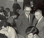15.02.2007 – Vor fast 50 Jahren wurde von Hamburger Lehrern das Schulschachturnier "Rechtes gegen linkes Alsterufer" ins Leben gerufen. Im folgenden Jahr, 1959, hatte es mit Mikhail Botvinnik und Salo Flohr (Bild) zwei ausgesprochen prominente Besucher. Damals fand das Turnier noch in recht bescheidenen Umgang statt. Nach einer kleinen Durststrecke ist die Veranstaltung seit Jahren wieder auf der Erfolgsspur und benötigt nun Riesensäle, um Tausende Schach begeisterte Hamburger Kinder und Jugendliche unterzubringen. In diesem Jahr wird der größte Schulschachtag der Welt am 20. Februar stattfinden und von Hamburgs Schulsenatorin Alexandra Dinges-Dierig persönlich eröffnet. Gastgeber ist wie gewohnt das Congress Centrum Hamburg.Homepage des Veranstalters... Berichte: 2006... , 2005... , 2004... , 2003..., 2002...