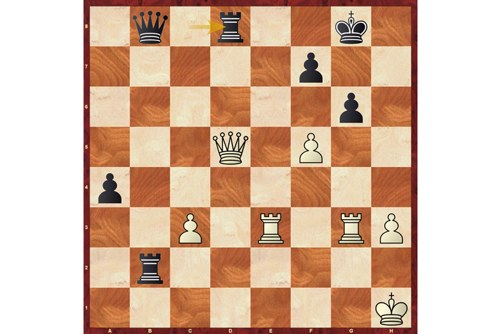 08.05.2026 – In der Diagrammstellung hat Schwarz gerade mit 40...Td8 die weiße Dame angegriffen, völlig unbeeindruckt von dem Einschlag 41.Txg6+. Ein Spiel mit dem Feuer - wer, meinen Sie, verbrennt sich am Ende die Finger?