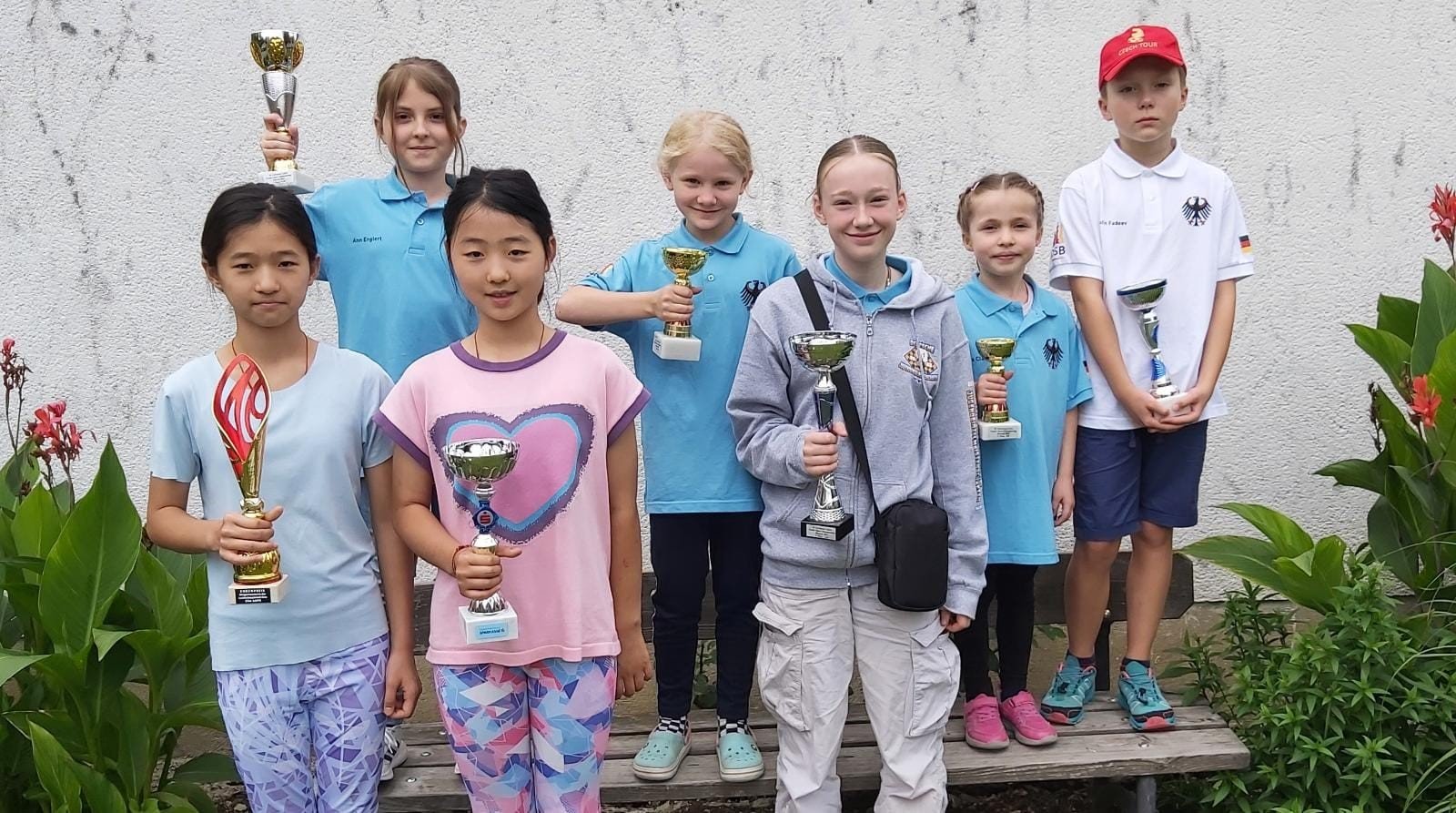 Vorne von links: Geschwister Chen, Johanna Richter und hinten von links: Ann Englert, Merle Staudt, Meara Classen, Michael Fadejew. | Foto: Thorsten Richter