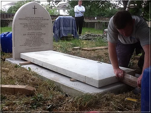 Mit Erlaubnis der Friedhofsverwaltung grub Stuart Conquest die waagerechte Grabplatte aus und ließ sie säubern. Außerdem wurde ein neuer senkrechter Grabstein angefertigt und aufgestellt, der über die Lebensdaten von Zukertort in polnischer und englischer Sprache informiert.