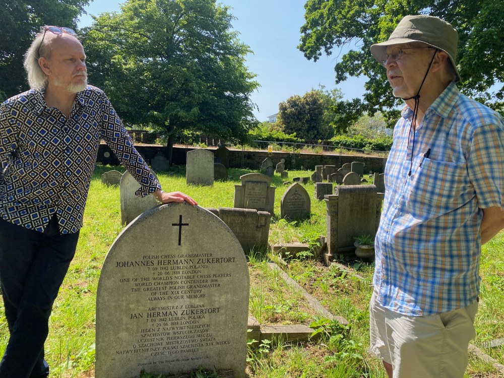 Er machte sich auf die Suche nach der Grabstelle von Johannes Zukertort und fand schließlich den Ort auf dem Friedhof, dort aber nur noch die Reste der Grabstelle. Zukertorts Grab mit einem waagerechten Gedenkstein war inzwischen tief eingesunken, kaum noch erkennbar, weil von Gras überwuchert, obwohl es nach Zukertorts Tod von Londoner Schachfreunden immer mal wieder entdeckt und gepflegt worden war.