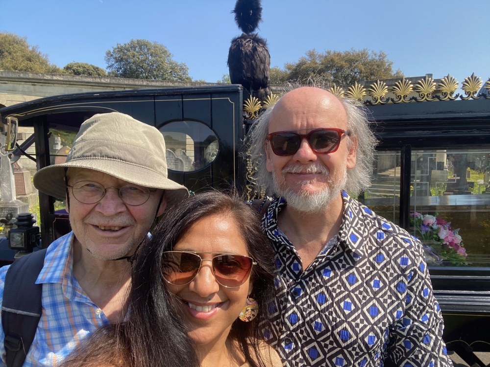 Helmut Pfleger und Stuart Conquest mit seiner Lebensgefährtin Prashila.