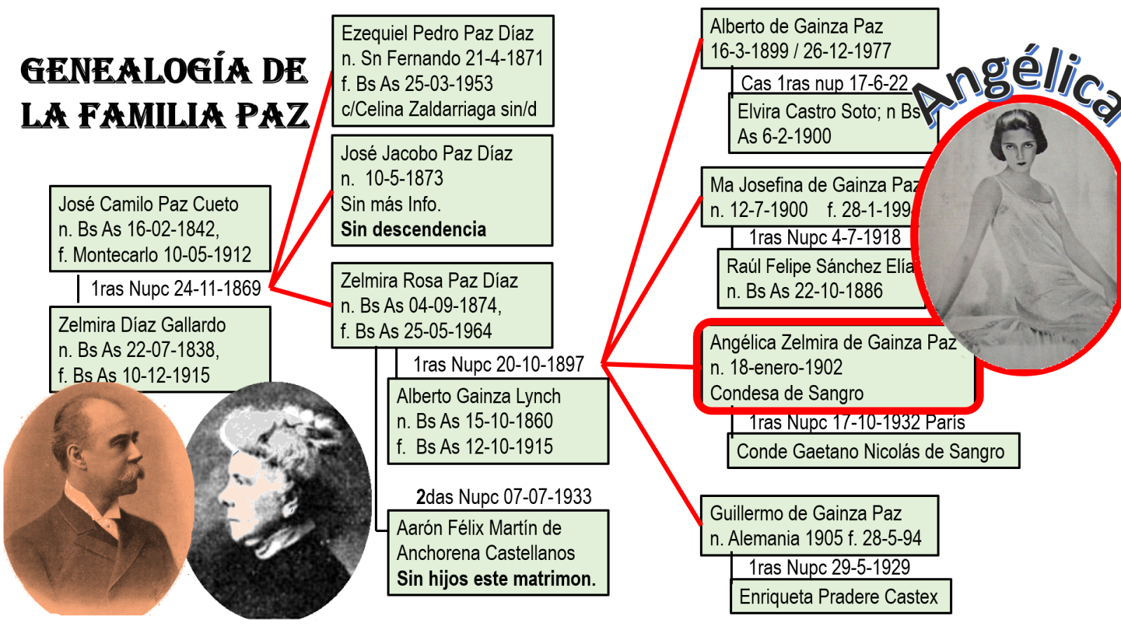 Unserer Protagonistin wurde am 18. Januar 1902 geboren, genau zu dem Zeitpunkt, als ihr Großvater, Dr. José C. Paz, mit dem Bau des größten und luxuriösesten Palastes unseres Landes (Argentinien) begonnen hatte. Der französische Architekt Louis Marie Sortais hatte die Pläne entworfen, aber es war Angelicas Vater – der Architekt Alberto de Gainza Lynch – der zusammen mit seinem Partner Carlos Agote den Bau leitete.