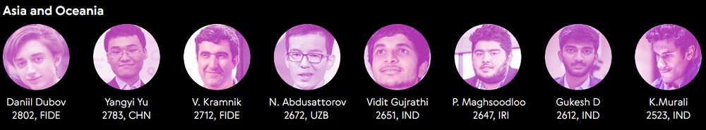 Für die "Americas" haben sich bereits im März zwei Spieler für das Grand Final qualifiziert: Wesley So und Sam Shankland. Hinzu kommen seit gestern für Asien und Ozeanien Gukesh und Abdusattorov. Gewöhnen muss man sich daran, dass die Russen jetzt Asiaten sind. Entsprechend waren diesmal Vladimir Kramnik und Daniil Dubov dabei. Ozeanien dagegen, dazu zählen Australien, Neuseeland und die Inselwelt des Pazifiks, war nicht vertreten - es gab wohl schlichtweg keinen Spieler, der stark genug gewesen wäre.