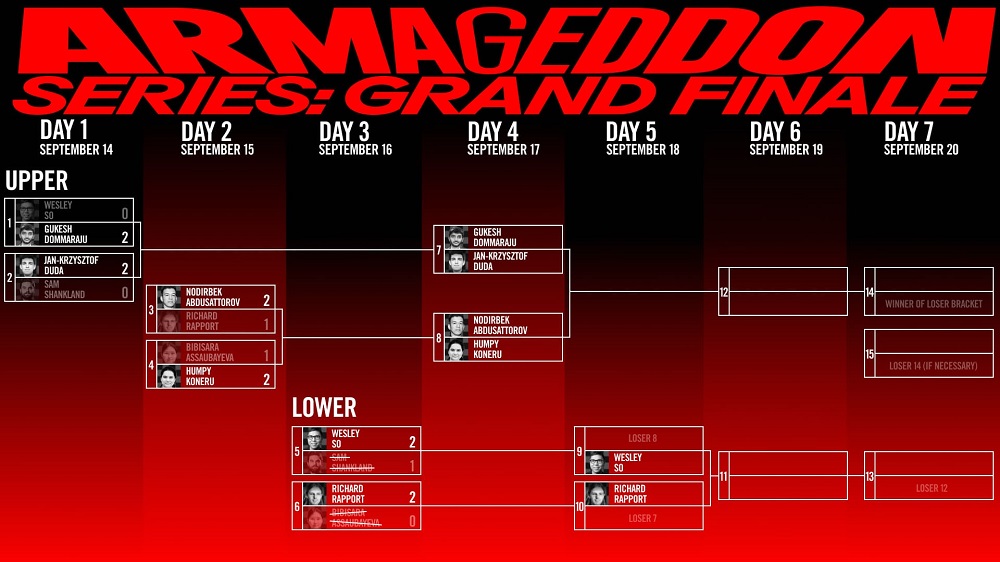 Die Armagedddonpartie verlor der Schwarzspieler Shankland ziemlich sang- und klanglos: