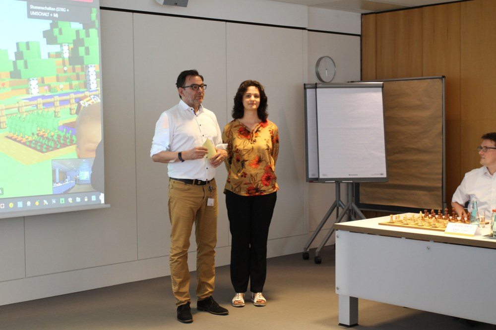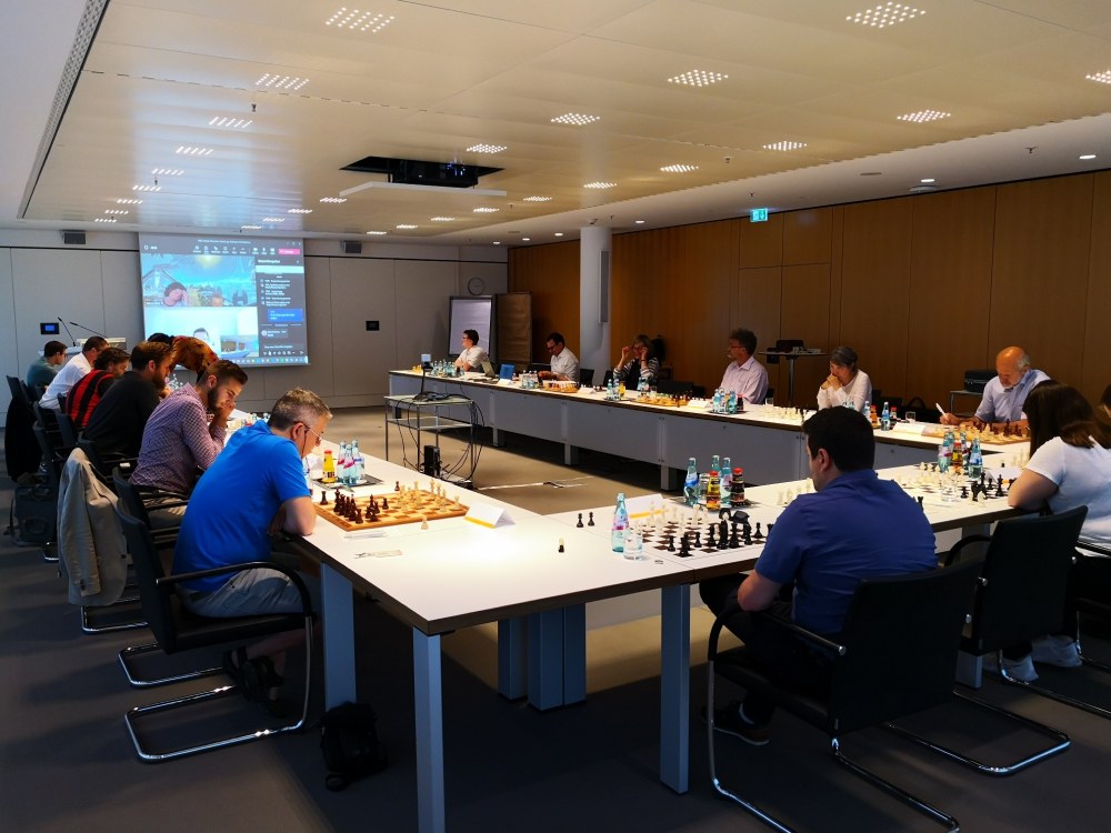 Diese Mischung aus Präsenz vor Ort und Online waren eine zusätzliche Herausforderung für die sehr sympathische Ukrainerin. Mit 4 Frauen war die Frauenqoute unter den Teilnehmern/Teilnehmerinnen für den Schachsport überdurchschnittlich hoch. Die Spieler und Spielerinnen kamen nicht nur von der DZ BANK sondern auch von der Deutschen Bundesbank, Commerzbank und VR Smartfinanz. Das Spielstärkeniveau reicht von geschätzt 1400 bis hinauf zu ELO 2000.