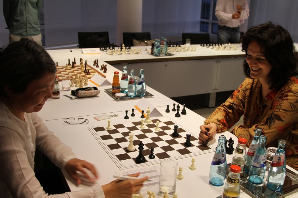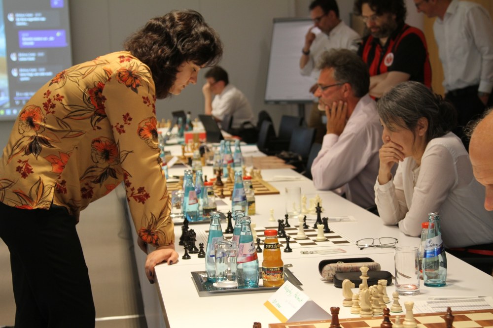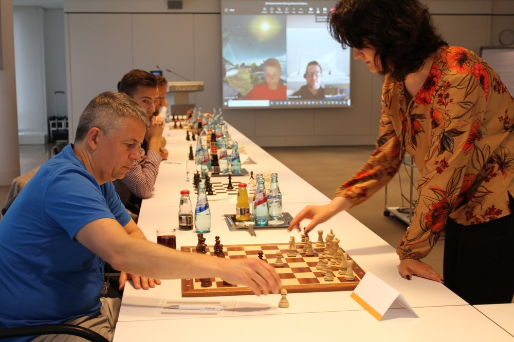 Simultan mit der ukrainischen Landesmeisterin Kateryna Dolzhykova in der DZ BANK in Frankfurt am 19.05.2022