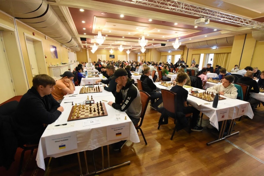 Ein Blick in den Turniersaal zu Beginn der fünften Runde (Foto: Tom Eriksen)