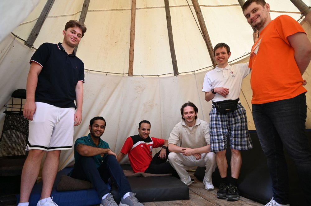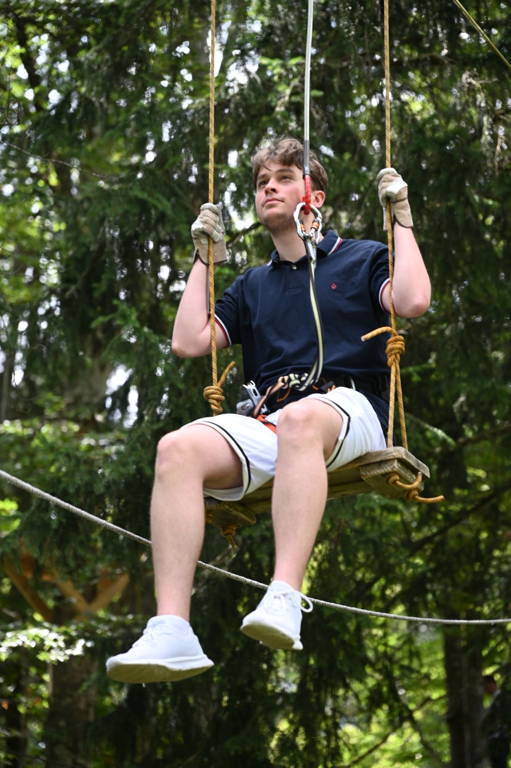 Für die Teilnehmer des Großmeisterturniers war Sonntag ein Ruhetag. Traditionsgemäß führen die Organisatoren an diesem Tag einen Ausflug durch. Sechs der acht Großmeister ließen sich die Tour in den “Wilden Westen”, auf die Bison-Ranch in Les Prés-d’Orvin, nicht entgehen. Nach dem Mittagessen ergriffen einige die Gelegenheit, an der Zipline zwischen den Jura-Tannen hindurchzuflitzen, oder sich im Axt-Werfen zu versuchen.