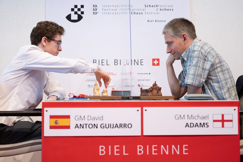 Der Spanier David Anton Gujiarro scheint in Biel in Fahrt zu kommen. Es schien bisher, dass er Anlaufschwierigkeiten in allen Disziplinen habe, aber heute spielte er eine für ihn typische Meisterleistung gegen Michael Adams, der zuletzt für Furore gesorgt hatte.