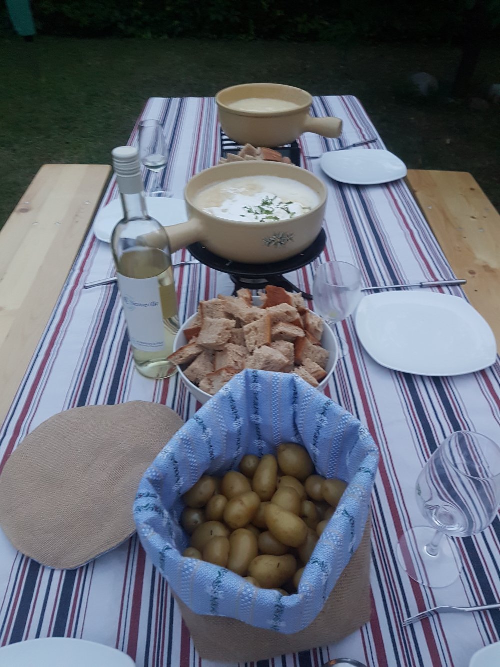 Übrigens: Die Schweizer essen auch im Hochsommer liebend gern Fondue. Ob im Restaurant, am See oder im privaten Beisammensein der Organisatoren.