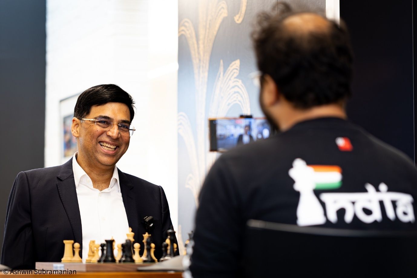 Selbst nach Jahrzehnten an der Spitze strahlte Vishy Anand die ruhige Zuversicht eines Mannes aus, der die erste Regel des Turnierschachs kennt: immer ausreichend trinken!