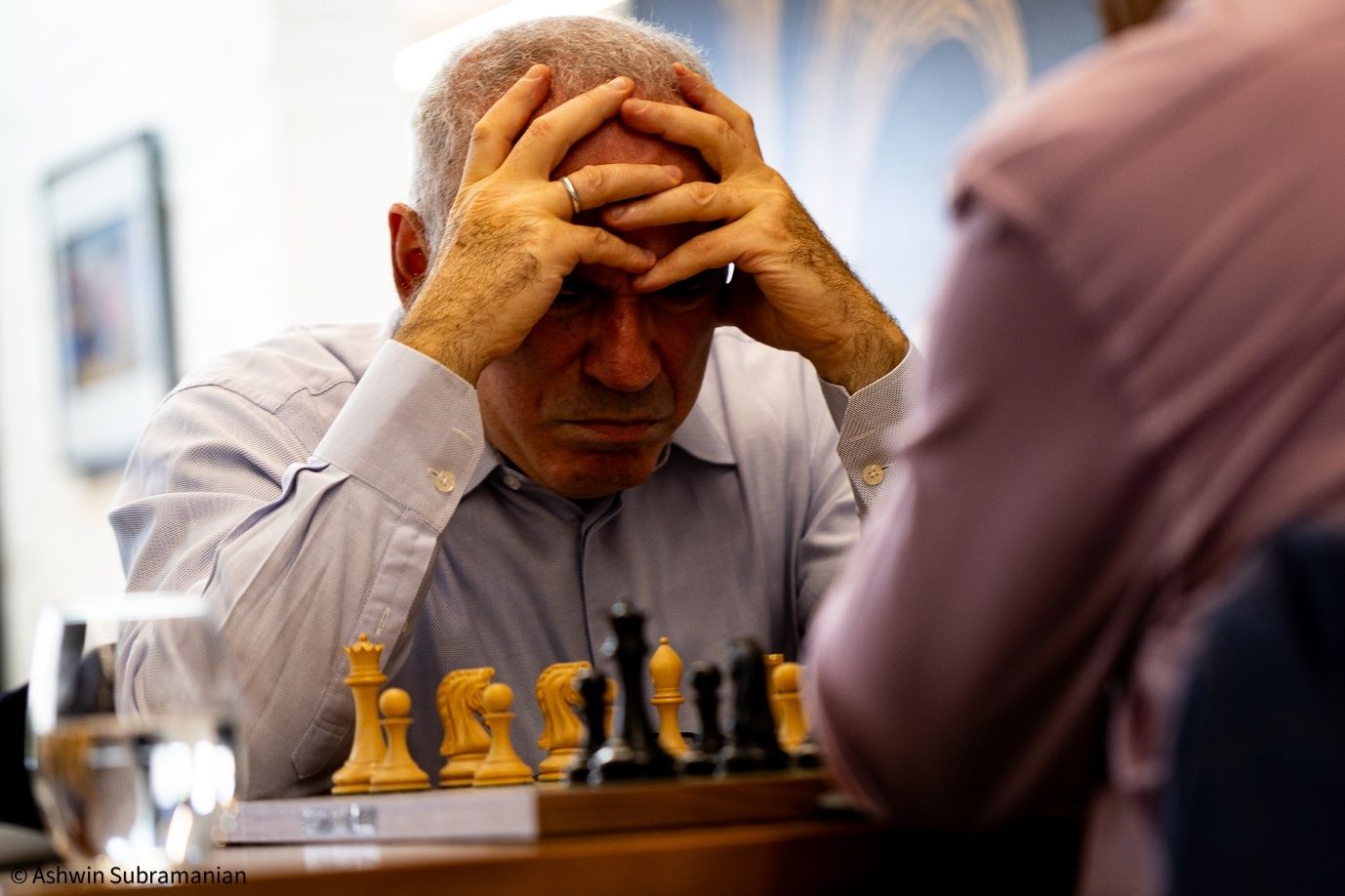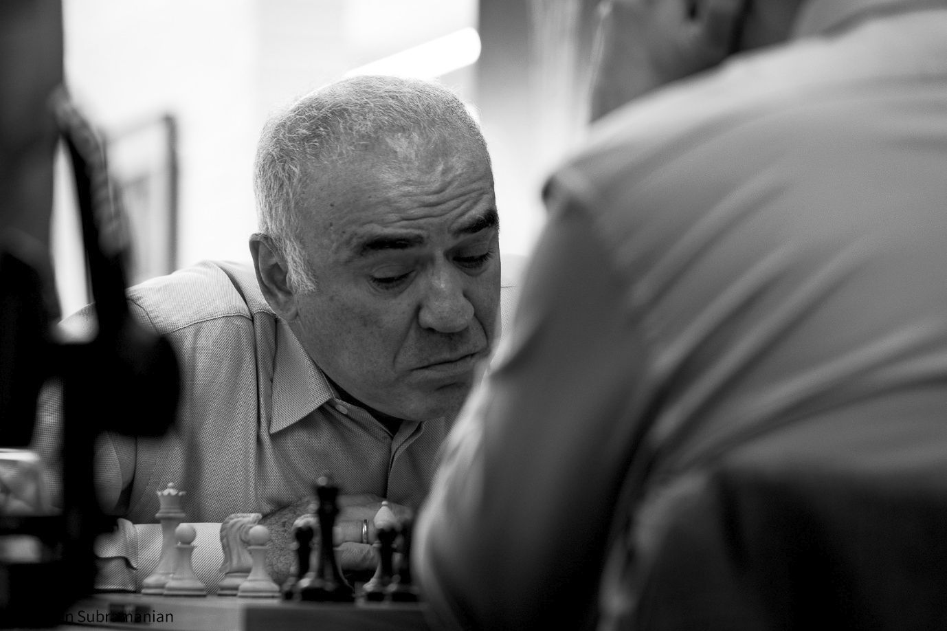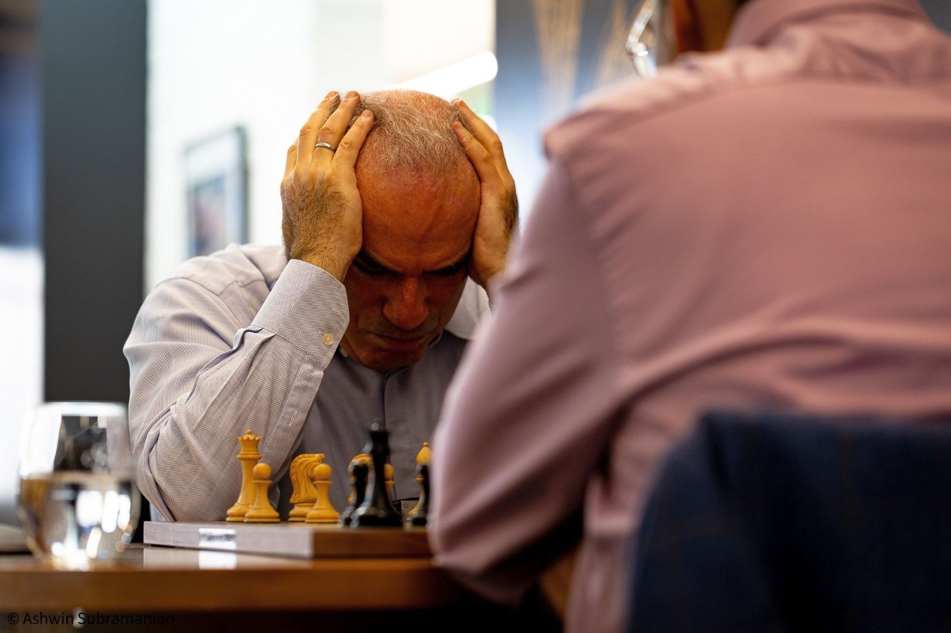 Der Wettkampfgeist ist ungebrochen. Garry Kasparovs legendäre Intensität ist ihm während des Spiels deutlich anzusehen.