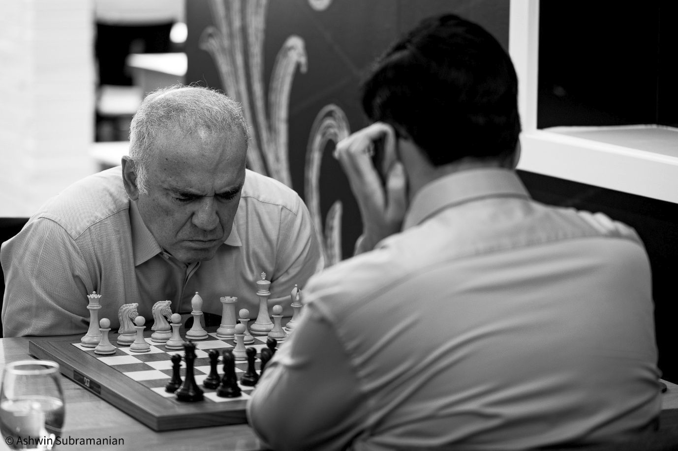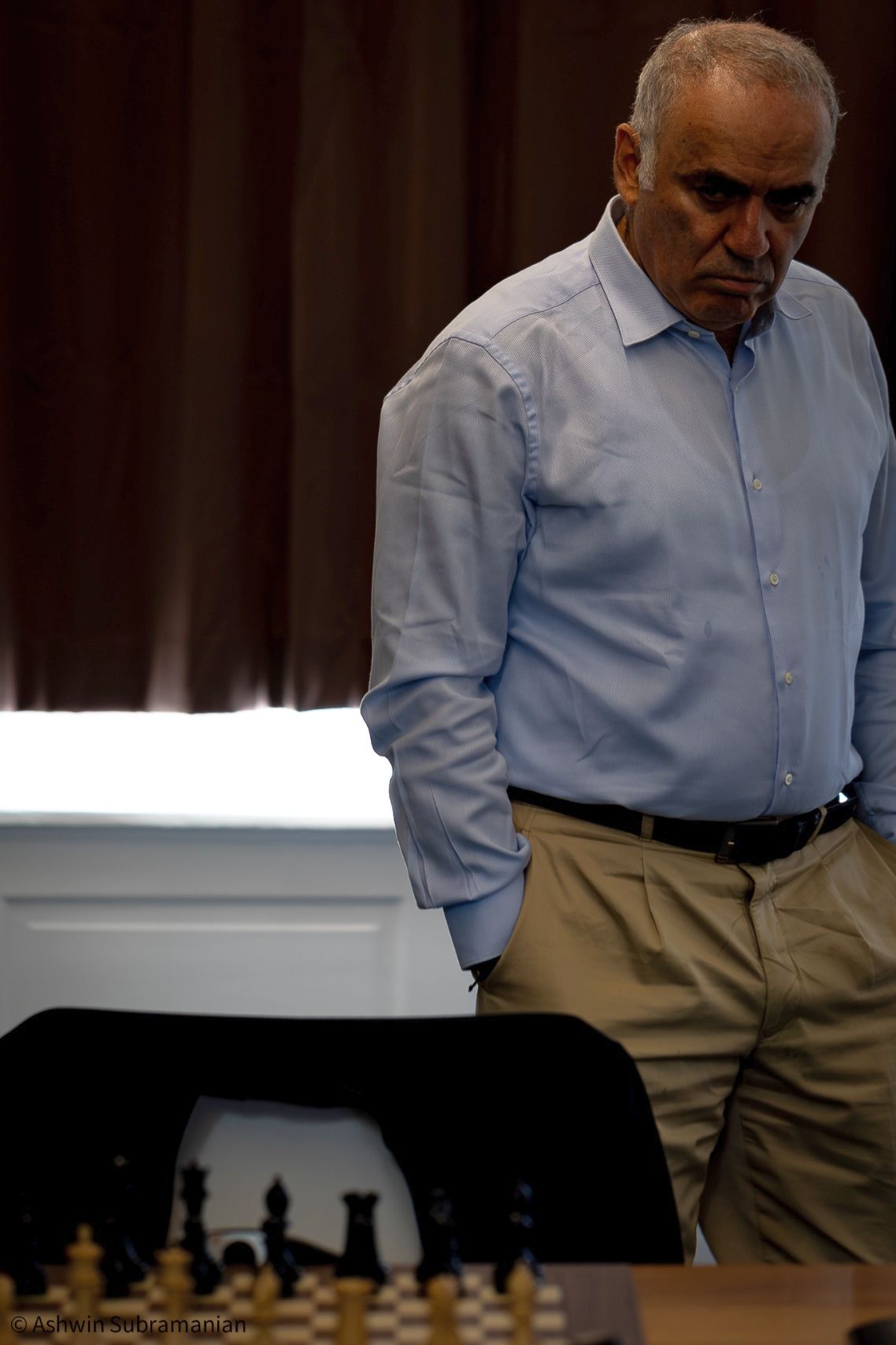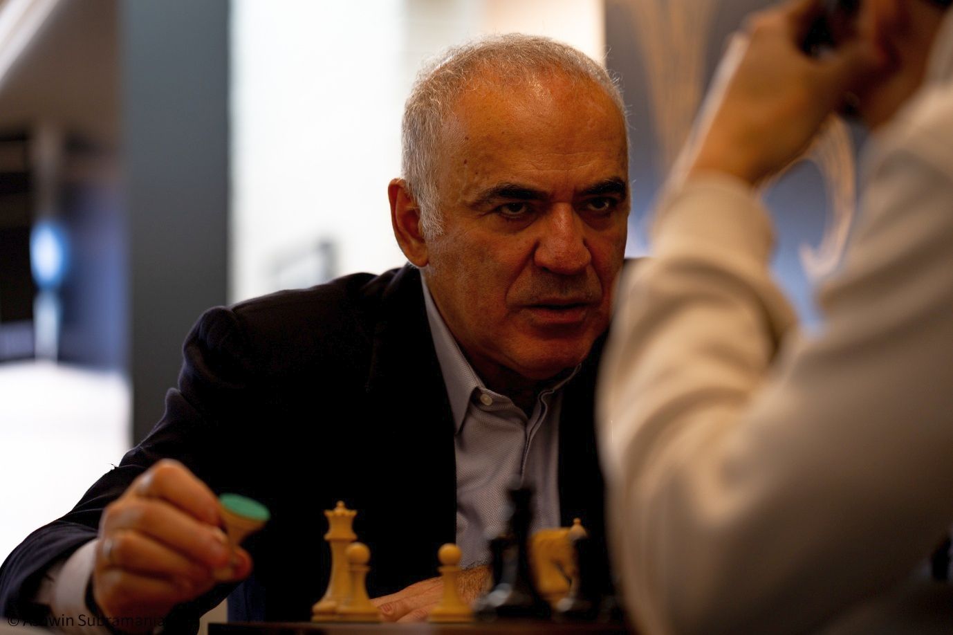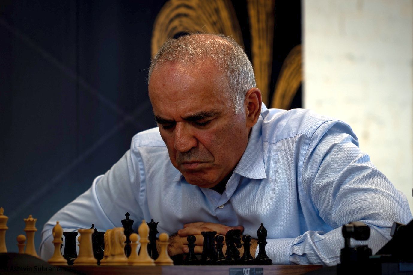Der Wettkampfgeist ist ungebrochen. Garry Kasparovs legendäre Intensität ist ihm während des Spiels deutlich anzusehen.