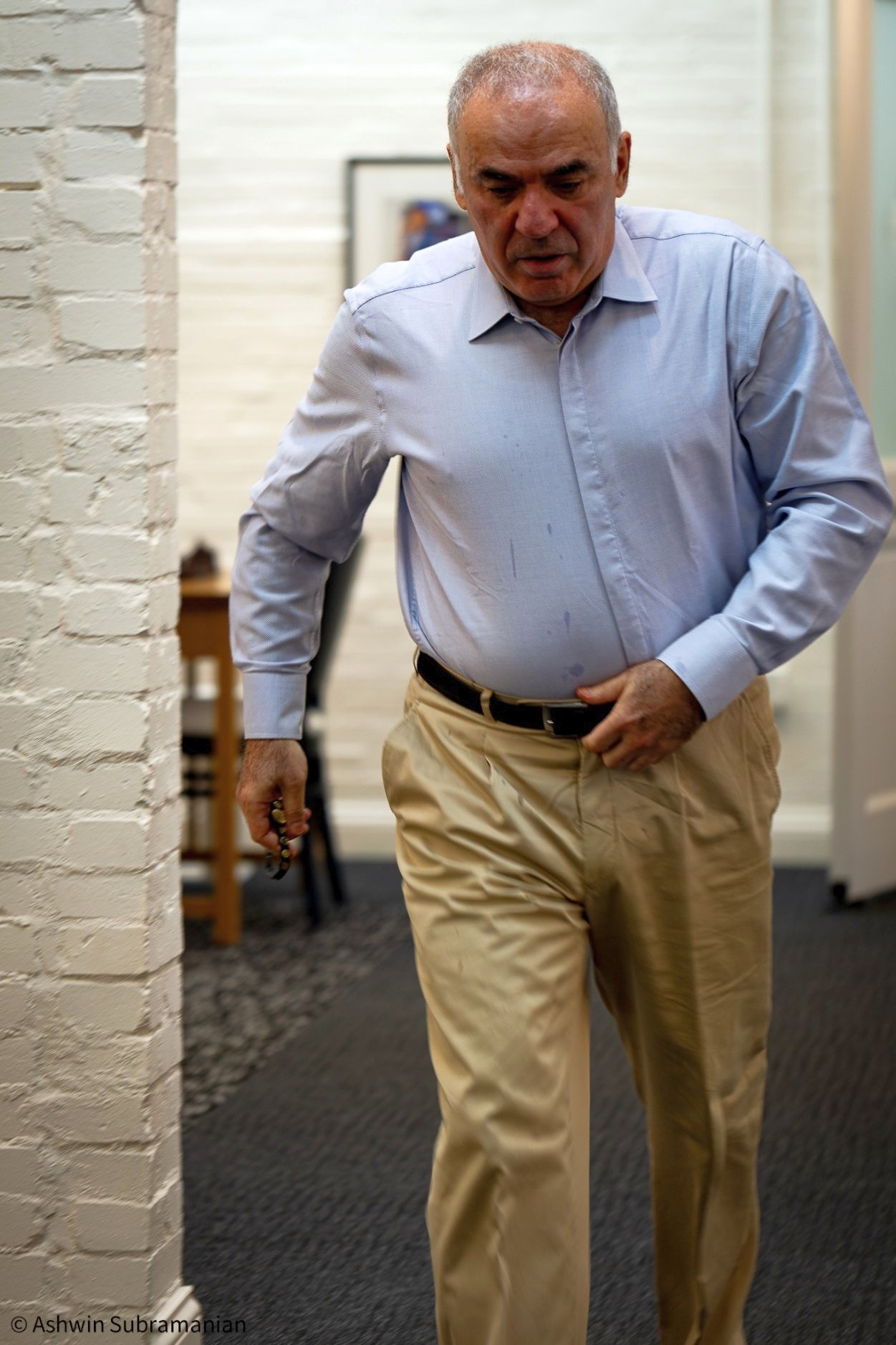 Kasparows Gang zum Spielort am zweiten Tag ist kein Spaziergang, sondern ein Statement!