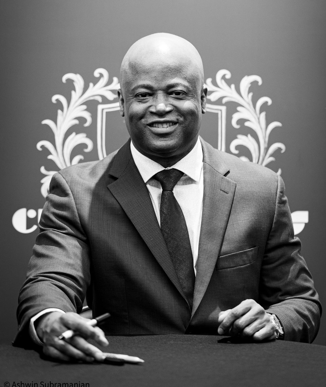 Großmeister Maurice Ashley, die legendäre Stimme des Schachs, in einem eindrucksvollen Schwarz-Weiß-Porträt! Er sah topfit aus und war bereit, einen weiteren seiner unverwechselbaren Kommentare abzugeben!