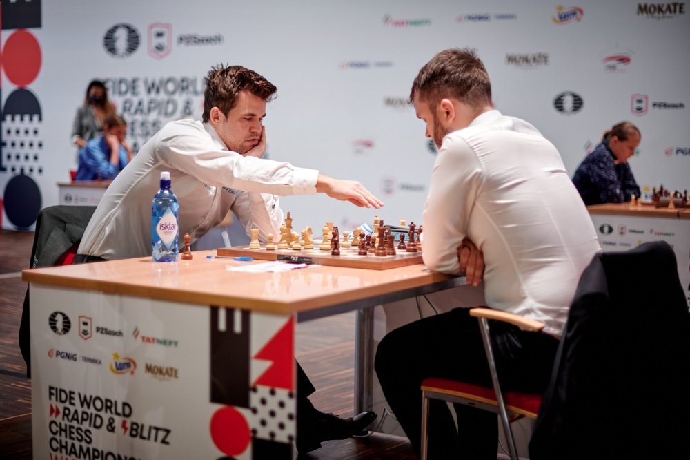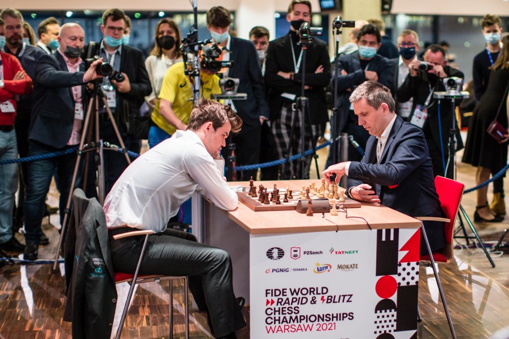 Magnus Carlsen muss zum Ende des Jahres 2021 gleich drei Weltmeistertitel verteidigen. In Dubai gelang ihm das im klassischen Schach gegen Ian Nepomniachtchi sehr gut. In Warschau gelang ihm das bei der Schnellschach-Weltmeisterschaft gestern nicht. Der Titelverteidiger ging als Spitzenreiter in den letzten Spieltag, verlor dann aber ein kompliziertes Damenendspiel gegen Nodirbek Abdusattorov. Am Ende des Tages kamen vier Spieler punktgleich ins Ziel, aber nur die ersten beiden nach Feinwertung durften einen Stichkampf spielen. So war es im Reglement festgelegt. Magnus Carlsen war nach Feinwertung nur Dritter und im Kampf um den Titel damit raus.