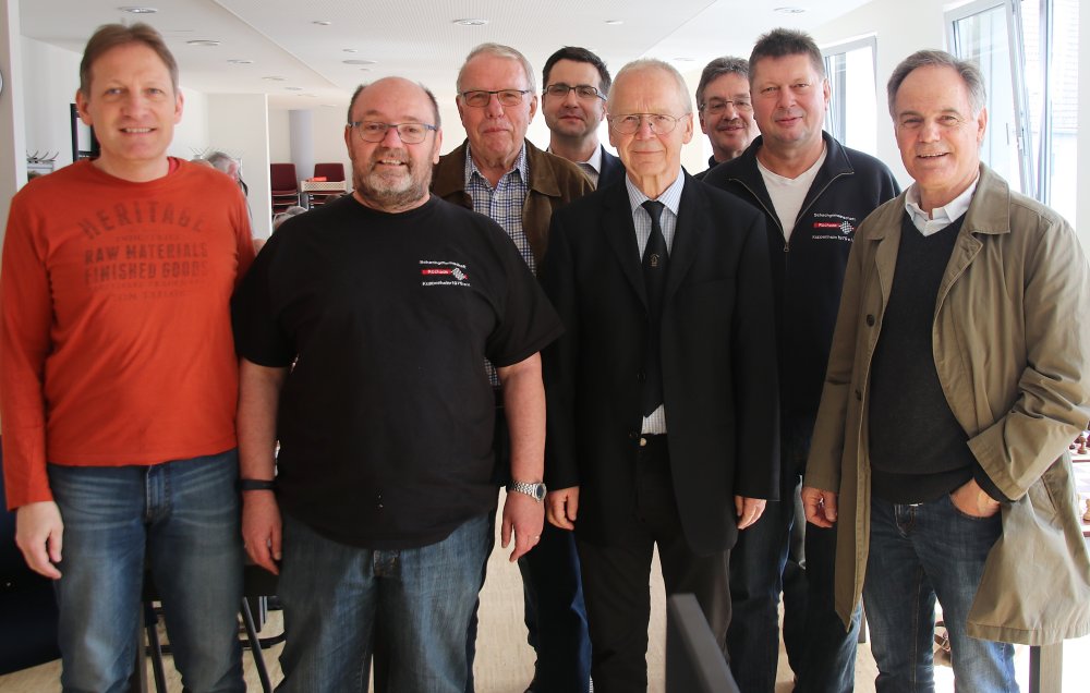 Die Gründungsmitglieder von 1979 der Rochade erhalten beim Festbankett Auszeichnungen vom Badischen Schachverband.