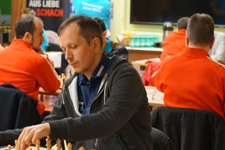 Große Aufmerksamkeit beim Duell der beiden „Schachfreunde“-Teams: Zum einen trat der deutsche Kandidat Matthias Blübaum an, zum anderen spielte der Titelmitfavorit Deizisau gegen den starken Aufsteiger aus Wolfhagen, der an der Spitze thronte nach zwei Spieltagen. Dem Blübaum-Team gelang es, den Nordhessen ihre erste Bundesliganiederlage beizubringen. Die beiden aktuellen Nationalspieler Blübaum und Dimitrij Kollars spielten Remis, ein ehemaliger gewann: Rustem Dautov trat an Brett 7 an und machte sich mit seinem Sieg ein nachträgliches Geschenk zu seinem 60. Geburtstag, den er am 28. November feiern durfte. Die weiteren vollen Punkte zum Deizisauer Sieg steuerten Tamas Banusz und Zdenko Kozul bei. Deizisau liegt damit zwei Punkte hinter Spitze, da die beiden ersten Runden gegen Kirchweyhe und Bremen jeweils 4:4 ausgingen.