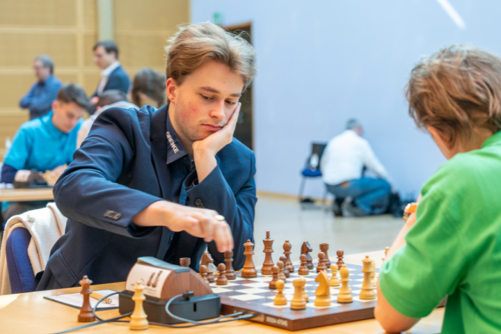 25.04.2026 – Der SC Viernheim (u.a. mit Yagiz Kaan Erdogmus, Foto) gewann gegen die Schachfreunde Wolfhagen, während die OSG Baden-Baden gegen den SC Heimbach-Weis-Neuwied nur remisierte. Für Titelchancen muss die OSG Baden-Baden das direkte Duell am Samstag gewinnen und auch am Sonntag punkten. Gleichzeitig darf der SC Viernheim keine weiteren Mannschaftspunkte holen. Das Remis gegen die Zweitplatzierten hilft dem SC Heimbach-Weis-Neuwied im Abstiegskampf. Für den USV TU Dresden wird die Luft nach Remis gegen SF Berlin im Tabellenkeller dünner. | Foto: Nils Rohde / ChessBase