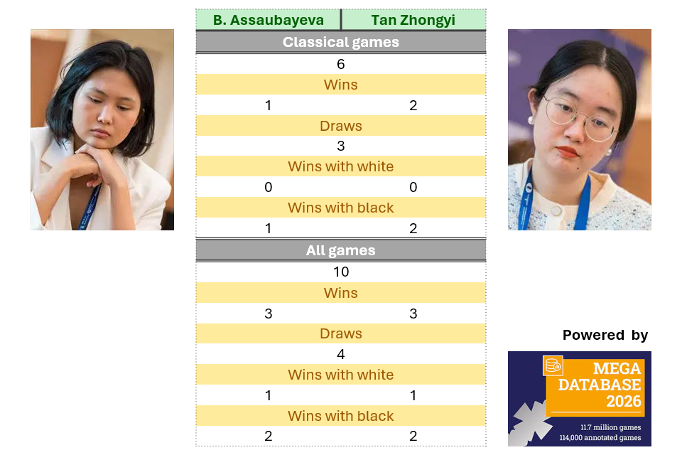 Assaubayeva wählte jedoch in einem kritischen Moment nicht die beste Fortsetzung, wodurch Tan sich neu formieren konnte. Die ehemalige Weltmeisterin bewies präzises Kalkül, neutralisierte den Druck und die Partie endete schließlich remis, wodurch Assaubayeva die alleinige Tabellenführung verwehrt blieb.