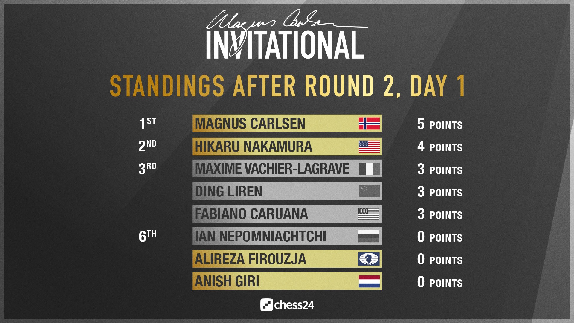 Die vier Begegnungen einer Runde werden an zwei Spieltagen ausgetragen. Am dritten Spieltag, dem ersten Tag der zweiten Runde traf Magnus Carlsen auf Alireza Firouzja. Hikaru Nakamura spielte gegen Anish Giri.