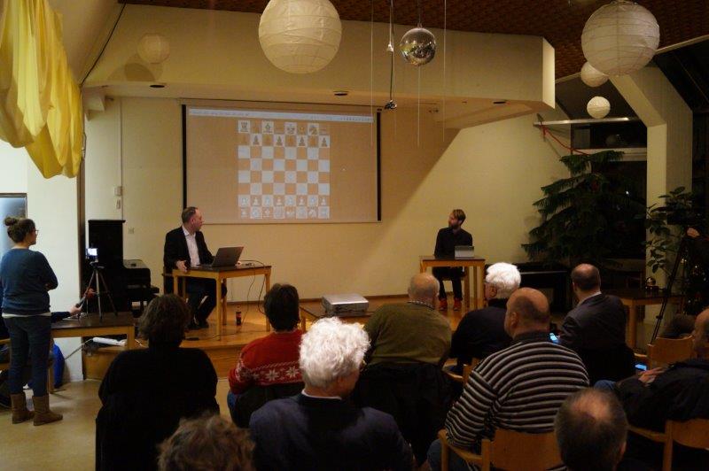 Der Livekommentar zum WM Kampf zwischen Karjakin und Carlsen: GM Rainer Polzin (l.) und meine Wenigkeit | Foto: Schachfreunde Berlin