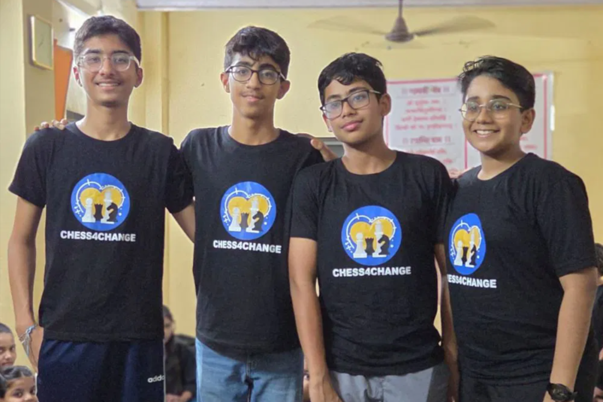 2023 wurden zwei 11-jährigen Schülern in Mumbai klar, dass Schach ihnen so viel gegeben hatte. Aaditya und Nehan spielten Schach seitdem sie klein waren. Es brachte ihnen Komfort und einen Weg, Freundschaften zu schließen. Sie überlegten, wie sie diese Erfahrungen mit Personen teilen könnten, die noch nie ein Schachbrett angefasst hatten. Mit der Unterstützung ihrer Mütter kontaktierten sie die AngelXpress Foundation, die mit Kindern von benachteiligten Communities in Mumbai arbeitet. Die Jungs begannen, Schach in Sewri zu unterrichten. Die Reaktionen überraschten sie! Kinder, die noch nie Schach gespielt hatten, lernten die Regeln un Windeseile. Sie waren neugierig und wollten lernen. Dies war die Geburtsstunde der Initiative Chess4Change.