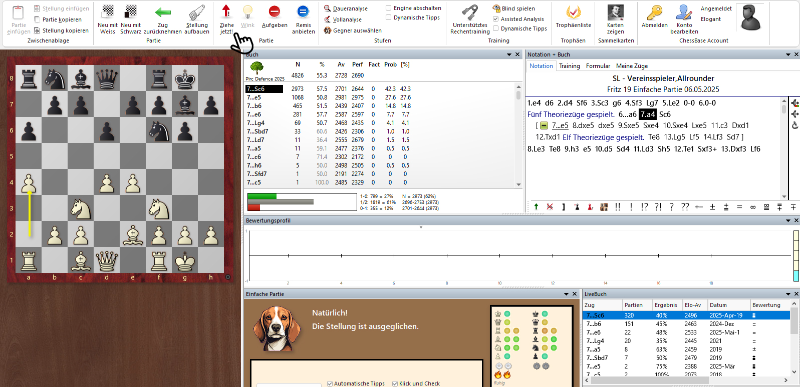 Fritz wird sich in allen Fällen Varianten aus dem Baum auswählen und Sie können entscheiden, wie viel Sie selbst überlegen oder auf die Züge des Baums schauen. In jedem Fall erhalten Sie einen guten Überblick über die Varianten.