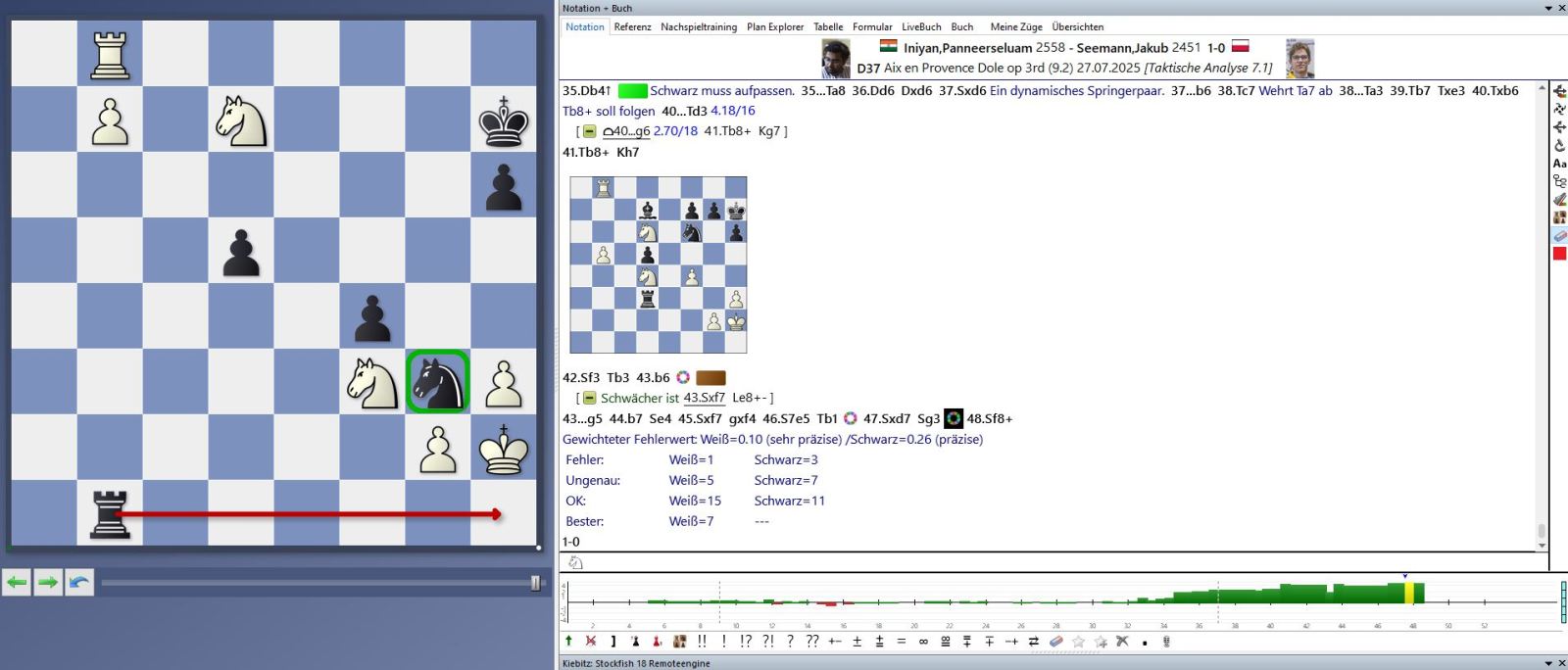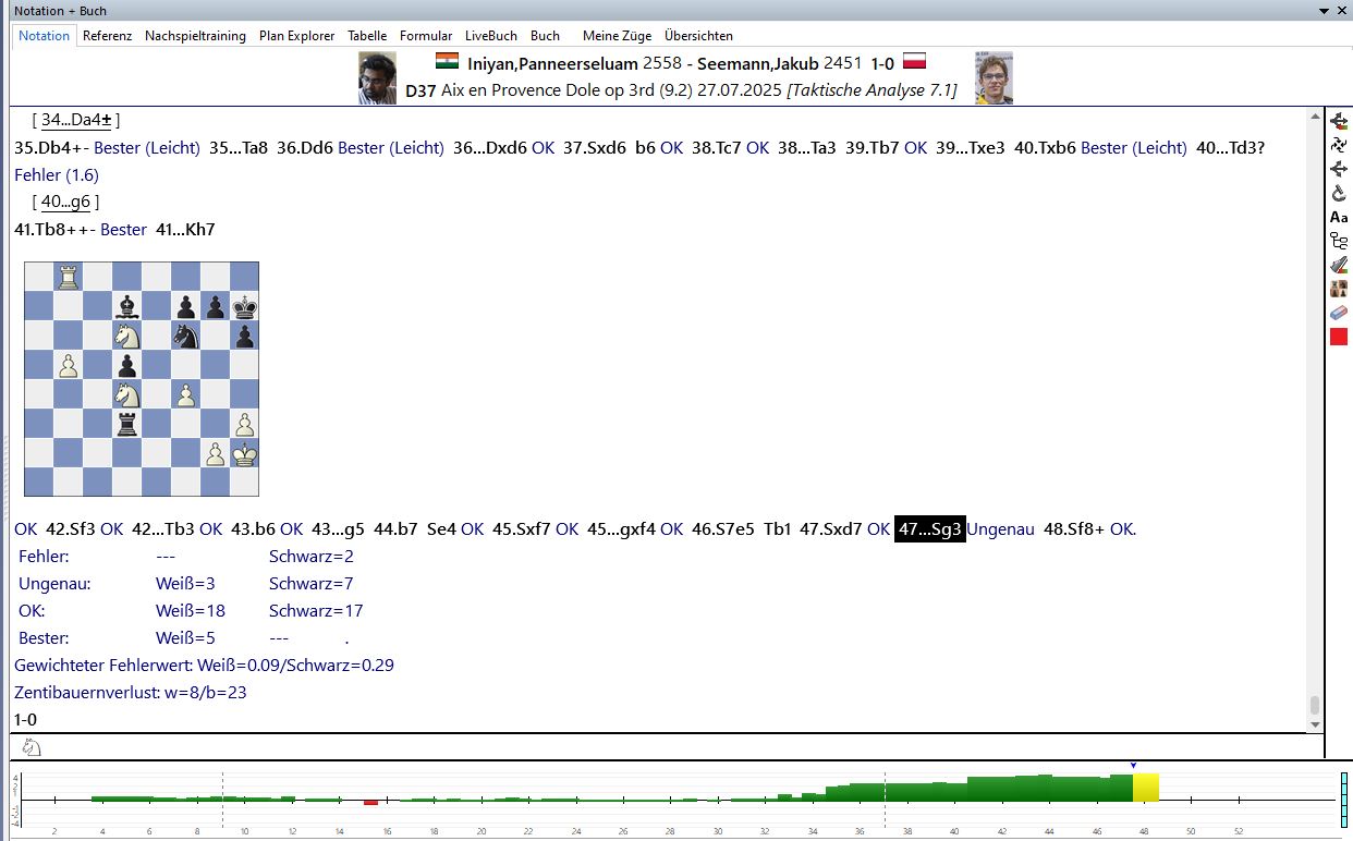 Während sich die Neuerungsanalyse auf Eröffnungen konzentriert, rückt die taktische Analyse Mittel- und Endspiele in den Fokus. Sie untersucht eine oder mehrere Partien und identifiziert Fehler, Patzer und taktische Chancen. Das Ergebnis ist ein prägnanter Bericht, der kritische Momente hervorhebt und Verbesserungsvorschläge enthält.
