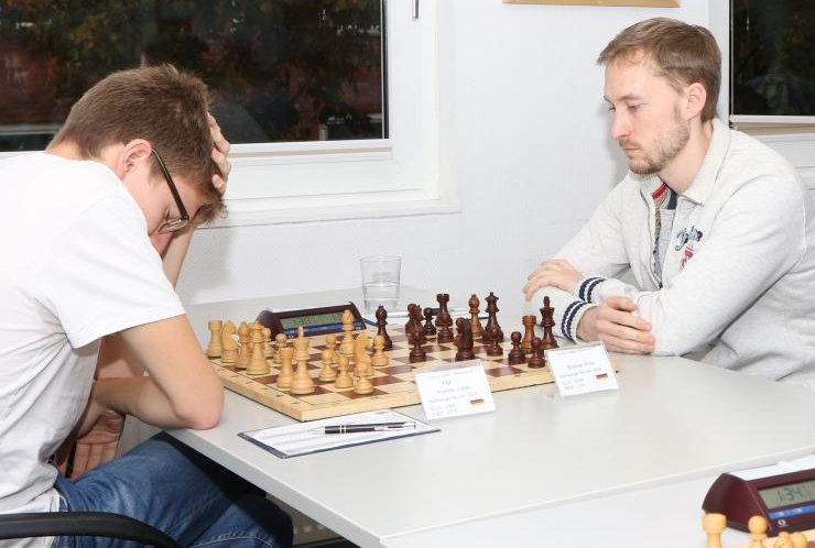 Elofavorit Eduardas Rozentalis kämpft nach einer Niederlage gegen Felix Meißner noch um ein ausgeglichenes Ergebnis.
