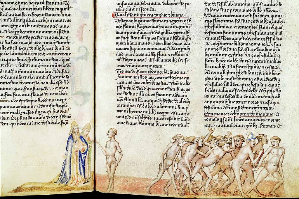 Dante und Vergil treffen die Sodomiten in der Hölle (Manuskript-Illustration, etwa 1345)