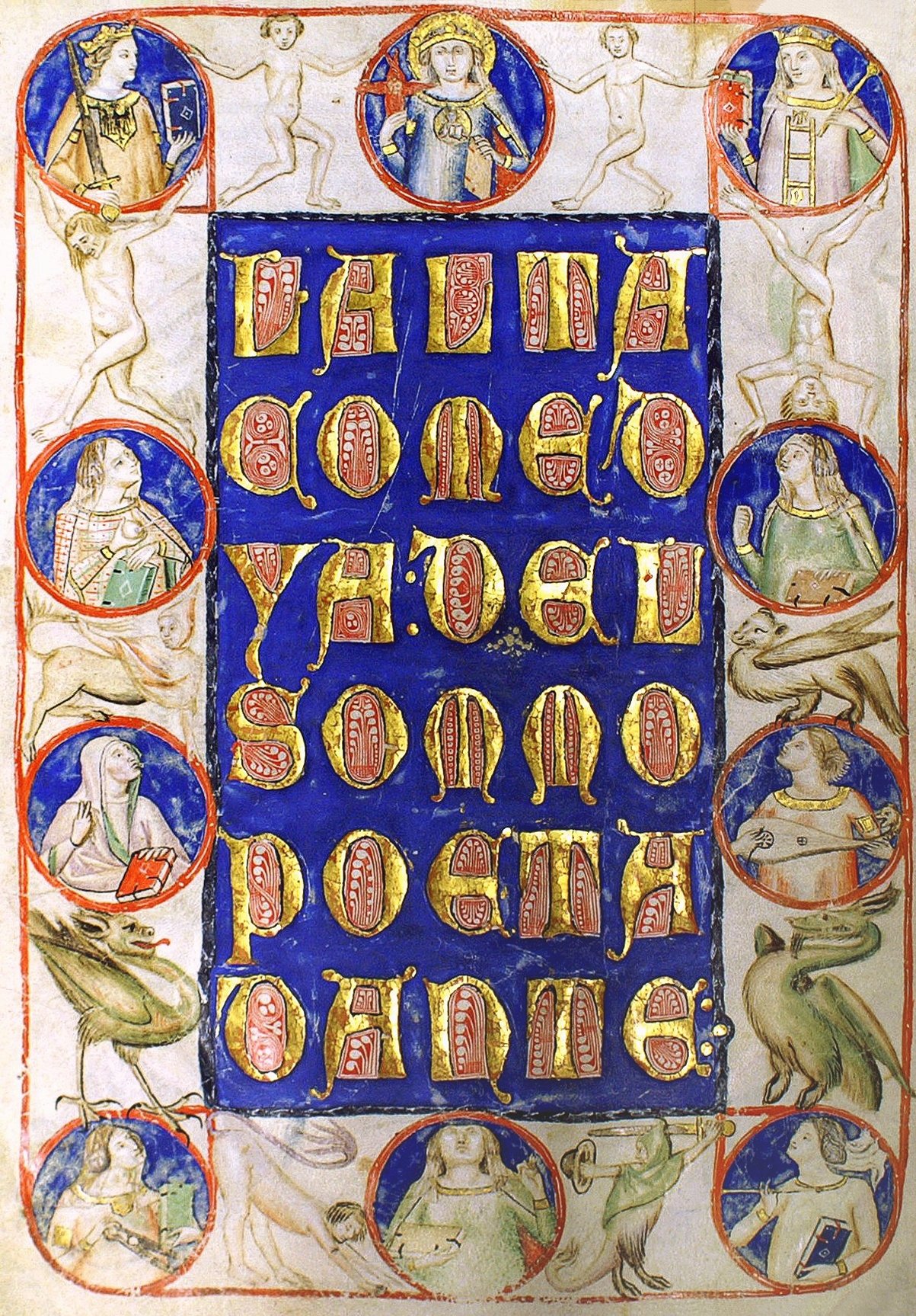 LALTA COMEDYA DEL SOMMO POETA DANTE, Titel des Codex Altonensis; illuminierte Handschrift, Norditalien, zweite Hälfte 14. Jahrhundert