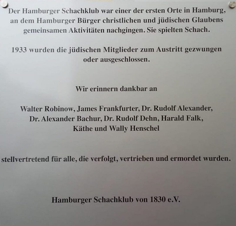 Wally und Käthe Henschel teilten auch das Schicksal vieler jüdischer Sportler:innen in Hamburg, darunter eine Reihe weiterer Schachspieler.