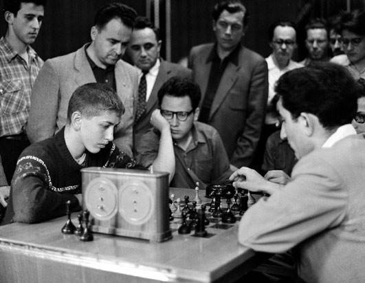 Fischer und Petrosian spielen Blitz im Zentral-Schachclub, 1958