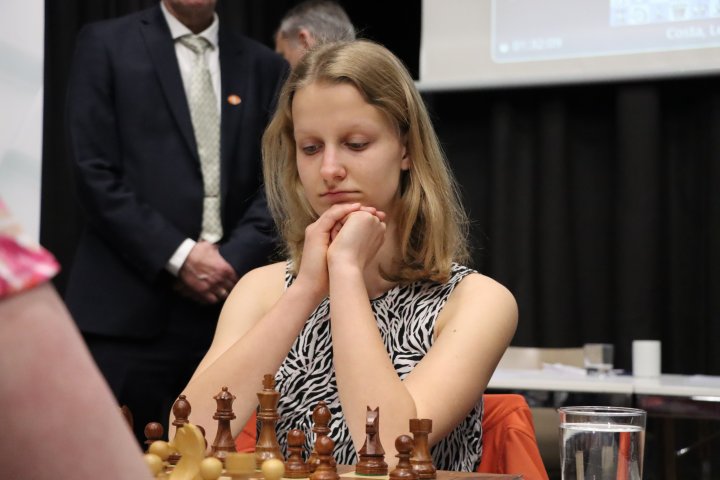 Theoretische Chancen hat auch noch Kateryna Dolzhykova. Sie gewann in Runde 7 mit Schwarz gegen Lara Schulze und kann mit 4 aus 7 darauf hoffen, dass sie die letzten beiden Runden und die drei Spielerinnen, die in der Tabelle vor ihr liegen, einen schwachen Schlussspurt haben.